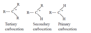 • When alkyl groups are attached to the positively charged C atom of the carbocation, the stability of the cation increases. The reason for this is the release of electrons by the alkyl groups through C-C σ bonds towards the positively charged carbon atom to which they are attached. This results in spreading the positive charge thereby stabilizing the ion.