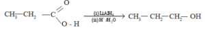 Carboxylic acids give alcohols when reduced with LiAlH4 which is a very strong reducing agent. Carboxylic acids and their derivatives are not reduced by NaBH4.