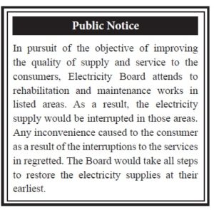 The electricity supply would be interrupted to the said areas due to