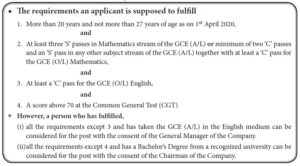 Anula who was born on 31st March 2000, has got a ‘C’ pass for Business Studies, an ‘S’ pass for Economics, and a ‘B’ pass for Accounting for the GCE (A/L) examination together with a score of 72 for the CGT. She has a ‘B’ pass for GCE (O/L) English.