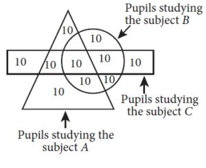 How many pupils are studying only two subjects out of A, B, and C?