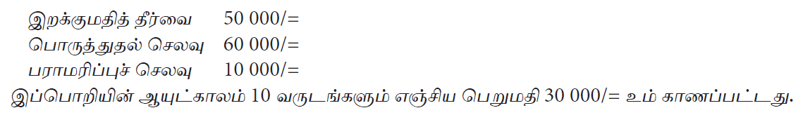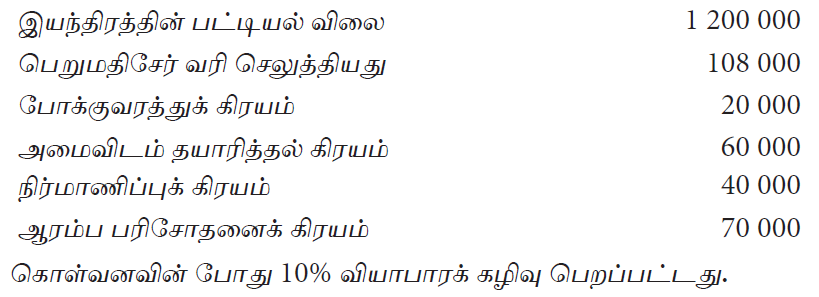 நிறுவனமொன்றினால் கொள்வனவு செய்யப்பட்ட இயந்திரம் தொடர்பான தகவல்கள் பின்வருமாறு :