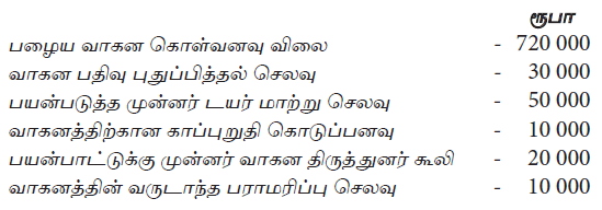 போக்குவரத்து சேவை நிறுவனத்தின் பழைய மோட்டார் வாகனம் கொள்வனவு தொடர்பாக ஏற்பட்ட கிரயங்கள் வருமாறு