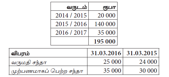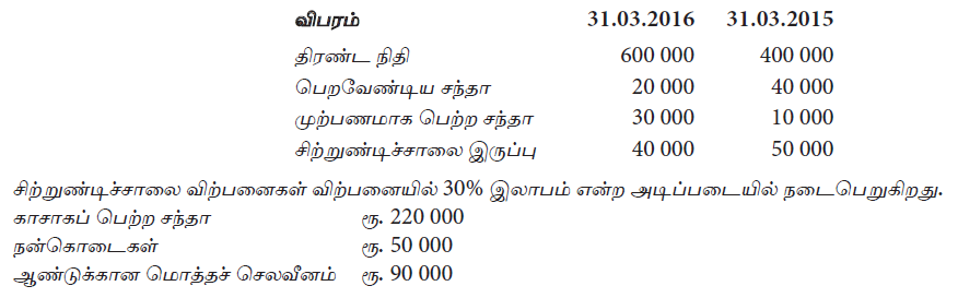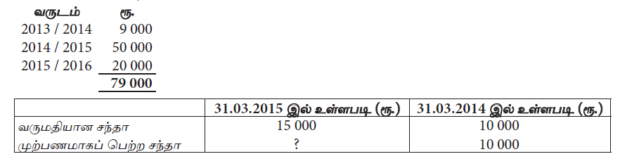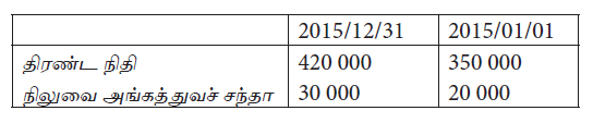 • 31.03.2015 இல் காசு மீதியானது ரூ. 150 000 ஆக இருந்தது.