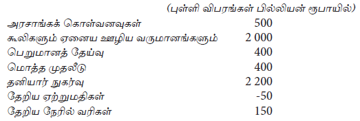 மொத்தத் தேசிய உற்பத்தியின் பெறுமானம் உமக்குத் தரப்பட்டுள்ளது. மொத்த உள்நாட்டு உற்பத்தியின் பெறுமானத்தை நீர் கணிக்க வேண்டியிருக்கிறது. எச்சீராக்கங்களை நீர் செய்து கொள்வீர்?