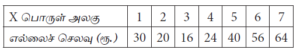 X பொருளை உற்பத்தி செய்வதற்கான குறுங்கால எல்லைச் செலவு பின்வரும் அட்டவணையில் காட்டப்பட்டுள்ளது.