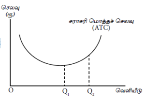 குறுங்காலத்தில் நிறுவனமொன்றின் மொத்தச் செலவு வளையியின் வடிவம் தீர்மானிக்கப்படுவது,