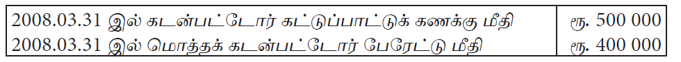 கடன்பட்டோர் கட்டுப்பாட்டுக் கணக்கின் 31.03.2008 இல் உள்ளபடியான சரியான மீதி