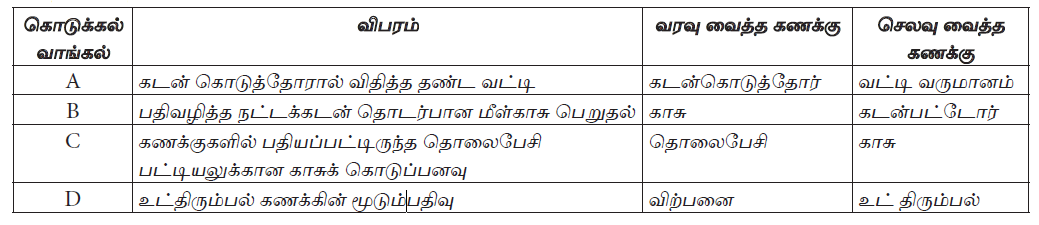 மேற்குறித்த கொடுக்கல் வாங்கல்களில் இரட்டைப்பதிவு முறைக்கமைய சரியாகப் பதிவு செய்யப்பட்ட கொடுக்கல் வாங்கல்கள்