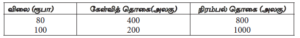 குறித்த பொருளொன்றின் கேள்வி மற்றும் நிரம்பல் பற்றிய தகவல்கள் பின்வரும் அட்டவணையில் தரப்பட்டுள்ளன.