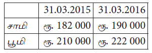 31.03.2015 முடிவடைந்த ஆண்டில் சாமியின் எடுப்பனவு ரூபா 6 000, 31.03.2016 இல் முடிவடைந்த ஆண்டில் பூமி எதுவித எடுப்பனவையும் செய்யவில்லை. 31.03.2015 இல் முடிவடைந்த ஆண்டிற்கான தேறிய இலாபமும், 31.03.2016 இல் முடிவடைந்த ஆண்டிற்கான சாமியின் பற்றும் முறையே