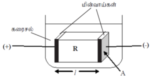 • l   =  உலோகக்  கனவுருவின் நீளம்  அல்லது  தெரிவு  செய்யப்பட்ட   கனவுருக் கரைசலின் நீளம்  (m)