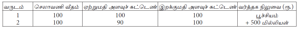 பின்வரும் அட்டவணையானது கருதுகோள் ரீதியான பொருளாதாரமொன்றின் வர்த்தகத் தரவுகளைக் காட்டுகிறது.