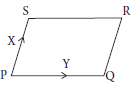 X,Y என்னுமிரு காவிகள் PQRS என்னும் காவி இணை கரமொன்றின் பொது உற்பத்தியானது P யிலிருந்து வரையப்பட்டுள்ளன.