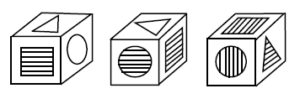 கீழே தரப்பட்டுள்ள ஒவ்வொரு உருவிலும் சதுரமுகியொன்றின் திறந்த முகப்புக்களில் உள்ள உருவங்கள் தரப்பட்டுள்ளன.