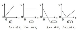 உருவில் அம்புக்குறியினால் காட்டப்படும் திசையில் கல் ஒன்று கிடையுடன் ஒரு குறித்த கோணத்தில் எறியப்படுகின்றது. வளித் தடை புறக்கணிக்கப்பட்டால்,பின்வரும் வேக (v) – நேரம் (t) வரைபுகளில் எவை t உடன் vx இனதும் t உடன் vyஇனதும் மாறல்களை மிகச் சிறந்த  முறையில் வகைகுறிக்கின்றன.